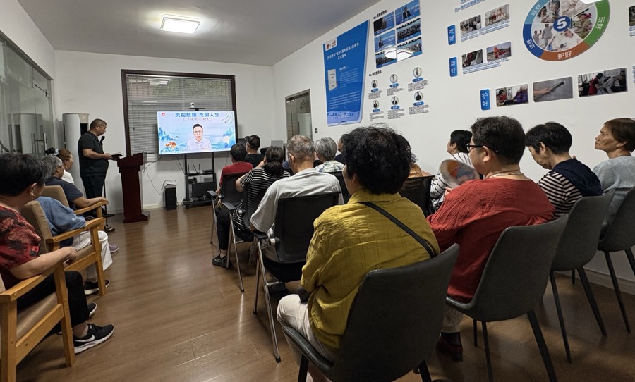 老人们在小养生馆内“听课”。 杨书源 摄