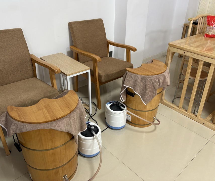 叶亚军店内的熏蒸足疗桶。 杨书源 摄
