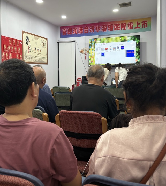 还有个老会员支招,说健康讲座开头“不妨先放点别的片子”。她提起附近一家店,上课先放段视频:老人孤零零躺在病床上,儿女不见踪影。意思再明白不过——劝老人别指望儿女,钱得花在自己身上。